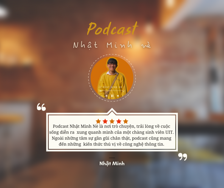 - Một kênh Podcast mang đến cho người nghe những câu chuyện diễn ra hàng ngày của một chàng trai UIT. Ngoài những tâm sự gần gũi chân thật, Podcast cũng mang đến cho người nghe những kiến thức thú vị về công nghệ thông tin.
