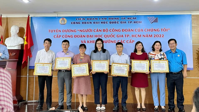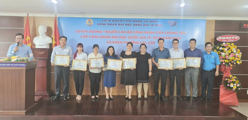 Sáng ngày 31/8/2022, tại phòng 512 Nhà Điều hành ĐHQG-HCM, Ban Thường vụ Công đoàn ĐHQG-HCM tổ chức tuyên dương “Người Cán bộ Công đoàn của chúng tôi” cấp Đại học Quốc gia TP. Hồ Chí Minh năm 2022.