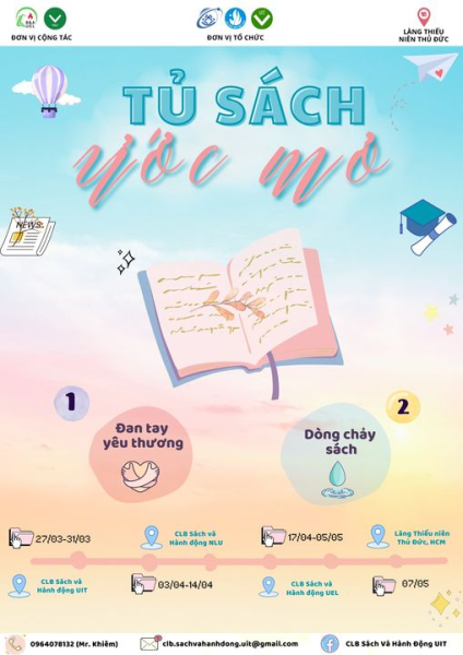 Mọi thông tin chi tiết xem tại: https://www.facebook.com/clb.sachvahanhdong.uit/posts/pfbid02QAxEorD8AJ21kjWYFvoTzh9GV8K2CaFJTCeQ5KfuKZYCrhoLbxifsCygKY9BGzGil