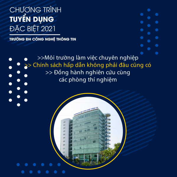 Nhằm đảm bảo nguồn nhân lực cho việc giảng dạy Đại học và Sau Đại học, trường Đại học Công nghệ Thông tin vừa đề ra chương trình tuyển dụng đặc biệt năm 2021.