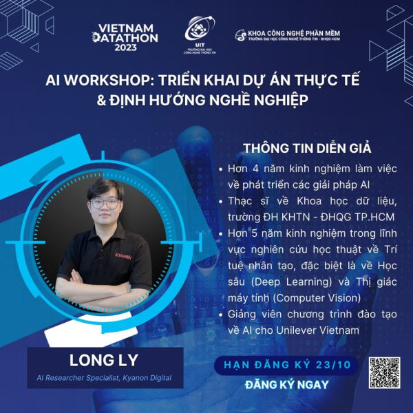 Đăng ký tham gia Workshop trước ngày 23.10.2023: https://link.uit.edu.vn/dUy5v