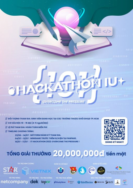 Với quy mô cực kỳ hoành tráng, IT Hackathon 2022: Overcome The Pressure đã sẵn sàng biến mùa hè của bạn trở nên cực kỳ nóng và bùng nổ hơn bao giờ hết với tổng các giá trị giải thưởng lên đến 20.000.000 đồng. Đây sẽ là sân chơi bổ ích cho các bạn trẻ đam mê Công Nghệ Thông Tin, sẽ là nơi thực hiện hóa những ước mơ còn đang ấp ủ.