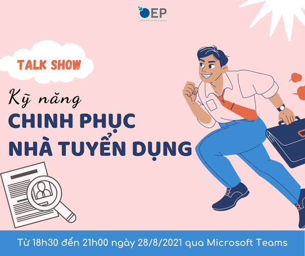 Văn phòng các CTĐB thân gửi các bạn thông tin đăng ký tham gia chương trình trò chuyện với chủ đề "Kỹ năng chinh phục nhà tuyển dụng", chi tiết như sau: