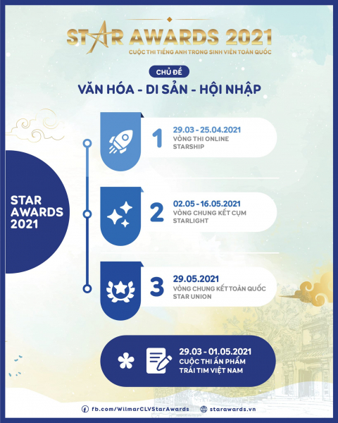 Nằm trong khuôn khổ cuộc thi Star Awards, kể từ ngày 28/3/2021, thí sinh có thể đăng ký tài khoản và làm bài thi thử trực tuyến tại: https://starawards.vn.