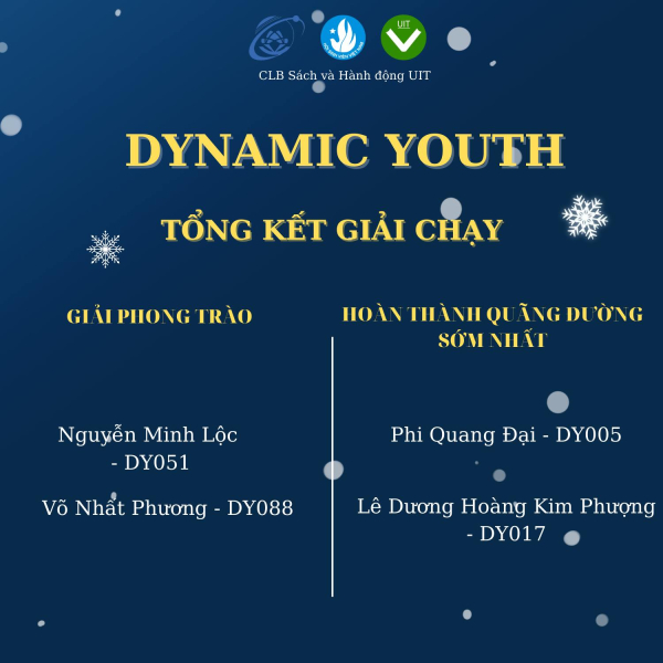 Nhiệt huyết, tưng bừng, vui vẻ là một trong số ít những ngôn từ có đủ sức mạnh để diễn tả sự thành công tốt đẹp của giải chạy ảo với chủ đề 'DYNAMIC YOUTH' do CLB Sách và Hành động UIT tổ chức đã diễn ra trong suốt hai tuần vừa qua.