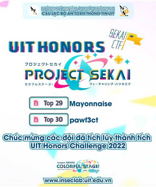 Sau 2 ngày thi đấu căng thẳng để vượt qua những challenge hóc búa, cuối cùng, Phòng thí nghiệm An toàn thông tin đã có những thành viên xuất sắc lọt vào top 30 giải đấu Sekai CTF.