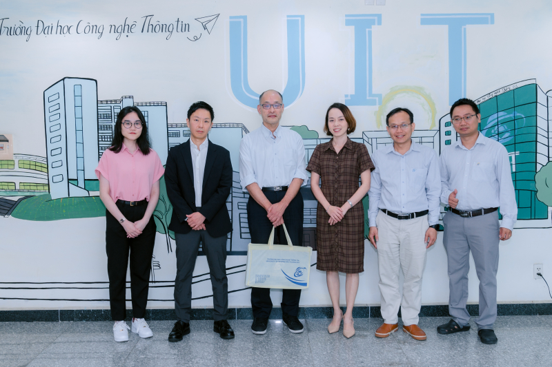 Tiếp đón đối tác Nhật Bản, phía Trường Đại học Công nghệ Thông tin ĐHQG-HCM có sự tham dự của PGS.TS. Nguyễn Lưu Thùy Ngân - Phó Hiệu Trưởng; TS. Nguyễn Tuấn Nam - Trưởng Phòng, Phòng Quan hệ Đối ngoại; TS. Nguyễn Minh Sơn - Trưởng Khoa, Khoa Kỹ thuật Máy tính; TS. Đoàn Duy - Phó Trưởng Khoa, Khoa Kỹ thuật Máy tính