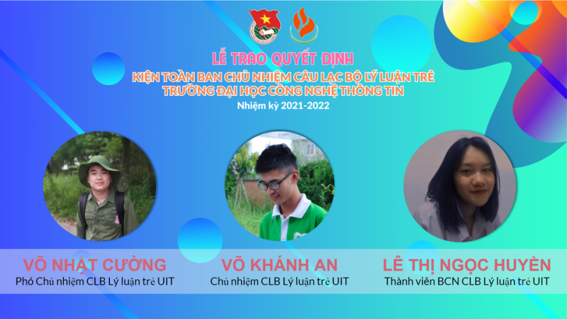 Sáng ngày 17/10/2021, CLB Lý luận trẻ UIT đã tổ chức thành công “Lễ trao quyết định kiện toàn Ban Chủ nhiệm CLB Lý luận trẻ UIT nhiệm kỳ 2021-2022”. Sau buổi lễ là chương trình sinh hoạt của CLB với chủ đề “Hôn nhân ở giới trẻ” và cuộc thi tìm hiểu kiến thức về dịch COVID-19.