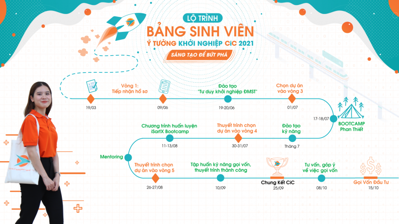 - Vòng 5 - Tỏa sáng (02/09 - 25/09/2021). Ngày 10/09/2021 ban tổ chức tập huấn kỹ năng gọi vốn và thuyết trình thành công. Sáng 25/09/2021 thí sinh chính thức tham dự vào chung kết CiC bảng sinh viên.