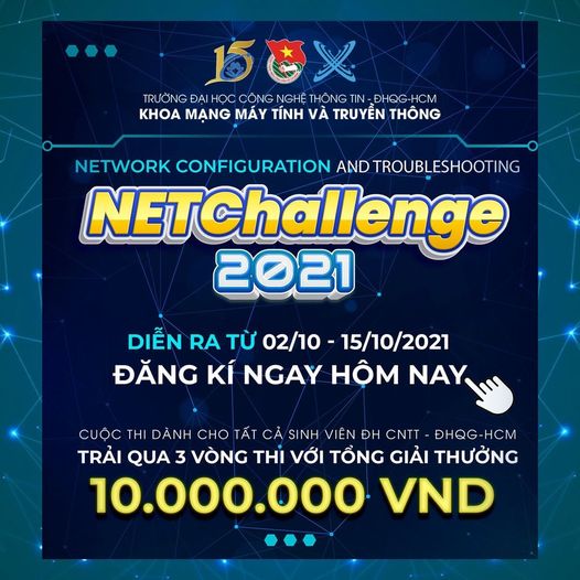 NET Challenge là cuộc thi thường niên về quản trị và khắc phục sự cố mạng do khoa Mạng máy tính và Truyền thông tổ chức đã chính thức trở lại với hình thức trực tuyến. Cuộc thi không chỉ tạo nên sân chơi học thuật lành mạnh cho sinh viên mà còn hứa hẹn sẽ là một cuộc thi hàng đầu về Network tại UIT có nội dung hướng đến các kiến thức về mạng máy tính, các thiết bị mạng, cấu hình và giải quyết sự cố mạng khi vận hành.