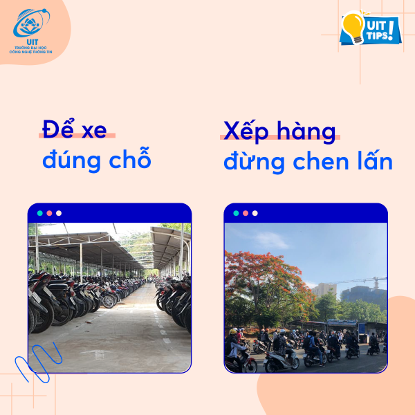 "Nét văn hóa" UIT chính là việc để xe đúng chỗ, đúng vị trí và không chen lấn khi xếp hàng vào nhà xe.