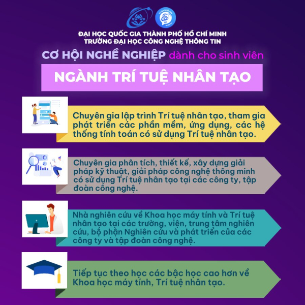Ngành Trí tuệ nhân tạo tại trường Đại học Công nghệ Thông tin, ĐHQG-HCM không chỉ là nơi chắp cánh ước mơ cho những bạn trẻ yêu công nghệ, mà còn là môi trường lý tưởng để phát triển tư duy sáng tạo, khai mở tương lai, dẫn dắt xu thế công nghệ mới.