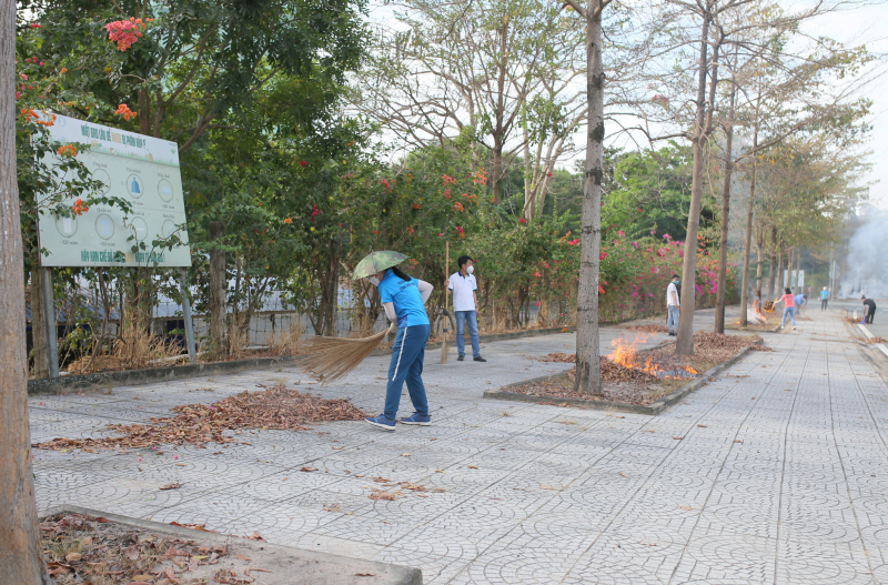 Thực hiện Kế hoạch 01/KH-CĐCNTT-ĐTN, sáng ngày 12/2/2021, Công đoàn - Đoàn Thanh niên Trường Đại học Công nghệ Thông tin về việc Tổ chức Ngày Chủ nhật xanh nhằm dọn, quét rác, lá cây, cỏ và vệ sinh khuôn viên đường đi bên ngoài Trường từ cổng nhà A đến giáp ranh trường Đại học An ninh