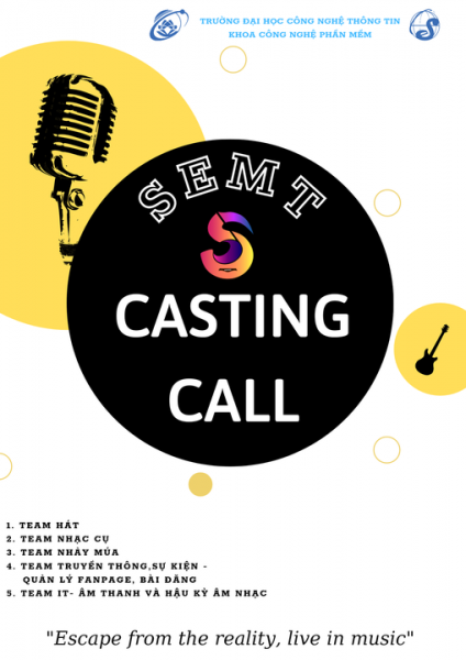 Đội văn nghệ Semt khoa Công nghệ Phần mềm tổ chức tuyển thành viên có đam mê về âm nhạc và nghệ thuật.
