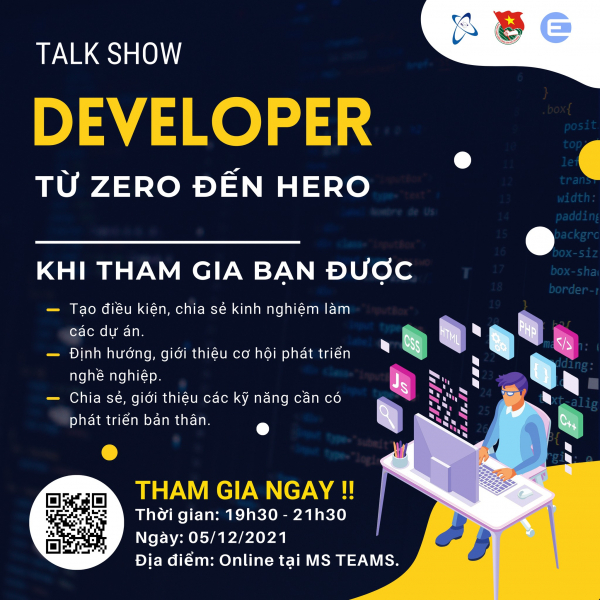Chương trình Talkshow Developer - “Từ zero đến hero” là một buổi nói chuyện nho nhỏ những thông tin và những lời chia sẻ, định hướng từ diễn giả về lĩnh vực developer.