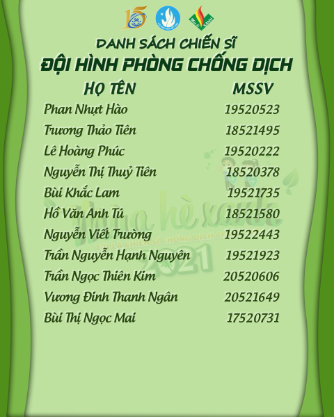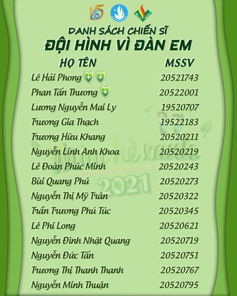 Xin chúc mừng những bạn có tên sau đây đã vượt qua vòng phỏng vấn và chính thức trở thành một thành viên của chuyến xe MHX2021. Hy vọng các bạn hoàn thành xuất sắc sứ mệnh của mình và có một chiến dịch tình nguyện thật ý nghĩa.