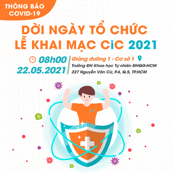 Theo đó, lễ khai mạc sẽ được dời đến : 08h00, chủ nhật, ngày 22/05/2021 tại giảng đường 1- Cơ sở 1, Trường Đại học Khoa học Tự nhiên ĐHQG-HCM.
