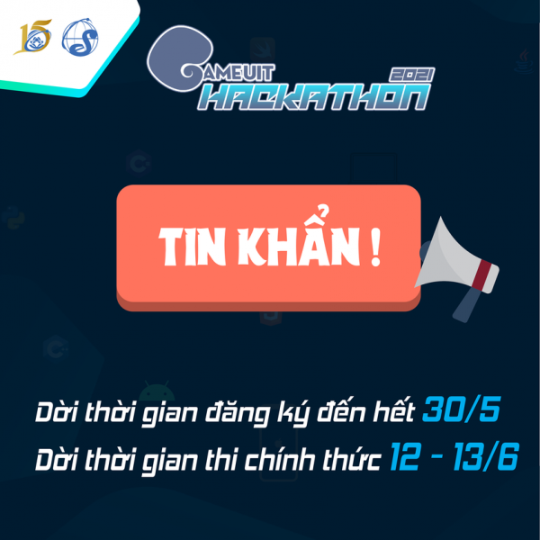 Game UIT Hackathon 2021 là cuộc thi lập trình trong 24h dành cho các bạn sinh viên do khoa Công nghệ Phần mềm trường Đại học Công nghệ Thông tin. Vì dịch biến dịch COVID-19 phức tạp, Ban Tổ chức xin thông báo dời lịch đăng ký, tổ chức cuộc thi để tạo điều kiện thuận lợi cho thí sinh và chương trình trong thời gian tới.