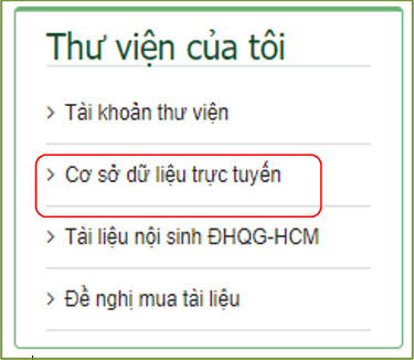 Bước 1: Truy cập website vnulib.edu.vn. Chọn “Cơ sở dữ liệu trực tuyến”