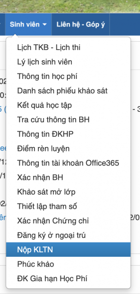 - Sinh viên chọn menu tìm đến mục nộp khóa luận tốt nghiệp