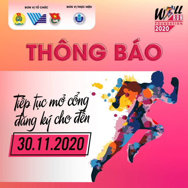Sau thời gian mở đăng ký, hiện Ban tổ chức nhận được rất nhiều yêu cầu mở rộng thời gian đăng ký từ những bạn chưa kịp tham gia và để tạo điều kiện cho các bạn này có thêm thời gian tham gia đường chạy, BTC quyết định mở đăng ký đợt 2, kéo dài đến hết ngày 30/11/2020.
