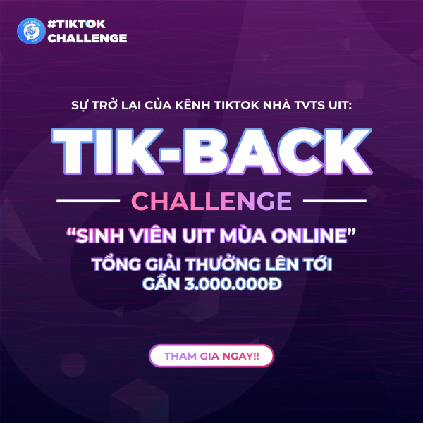 Nhằm tạo sân chơi cho các bạn sinh viên giải tỏa căng thẳng sau những ngày học tập mệt mỏi. Đồng thời là nơi để các bạn thể hiện tài năng sáng tạo trên các video tiktok. Vì vậy, ban Tư vấn Tuyển sinh đã tổ chức challenge mang tên “Tik - Back Challenge”.