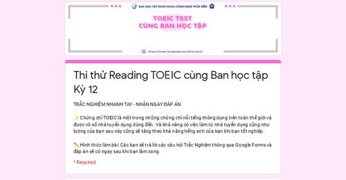 Một tuần lại trôi qua, lại đến giờ làm "mini TOEIC test" cùng với BHT khoa Công nghệ Phần mềm. Nếu bạn muốn cải thiện kĩ năng Tiếng anh của mình hay là muốn nâng cao số điểm cho kỳ thi TOEIC thì còn chần chừ gì nữa, hãy tham gia ôn tập TOEIC cùng BHT mỗi tuần nào