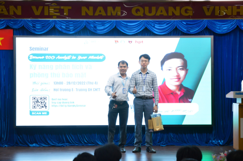 Và thế là buổi Seminar với chủ đề “Become SOC Analyst In Your Mindset - Kỹ năng phân tích và phòng thủ bảo mật” được tổ chức bởi Khoa Khoa học và Kỹ thuật thông tin đã được diễn ra thành công tốt đẹp vào ngày 28/12/2022 vừa qua.
