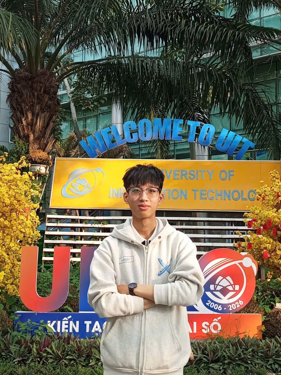 Cùng với đó, sự đồng hành của giảng viên và cộng đồng sinh viên cũng là một yếu tố quan trọng giúp Long phát triển. Theo Long, các thầy cô tại UIT không chỉ có chuyên môn sâu mà còn rất gần gũi, sẵn sàng hỗ trợ sinh viên trong quá trình học tập và nghiên cứu. Đồng thời, những anh chị khóa trên trong ngành cũng thường xuyên chia sẻ kinh nghiệm, định hướng học tập và nghề nghiệp, giúp sinh viên khóa dưới nhanh chóng thích nghi với môi trường đại học.