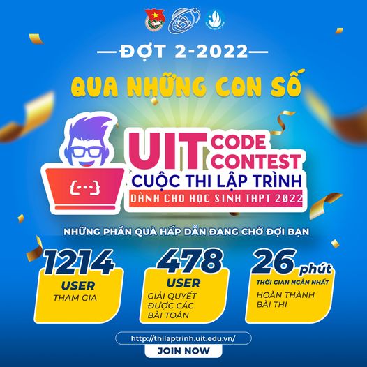 Đăng ký tham gia ngay vào cuộc thi hấp dẫn này nhé các bạn: https://thilaptrinh.uit.edu.vn/