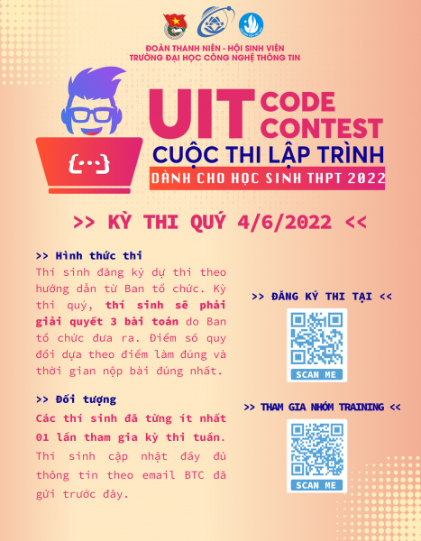 Mọi thông tin chi tiết xem tại: https://www.facebook.com/UIT.Fanpage/posts/pfbid02cWsizCd4SzdNXAwMSx91vWqSS6JZUiDt7CGQJ84Dj7pZhedR9T15Sd22ZYG3EuQXl