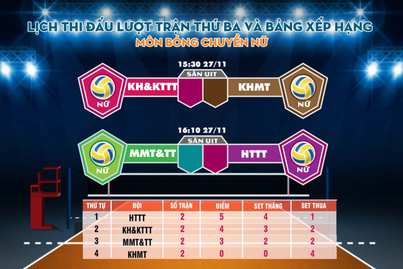 Lượt thi đấu cuối cùng sẽ diễn ra vào chiều ngày 27/11/2020 tại sân bóng chuyền UIT. Kết thúc lượt thi đấu này, Huy chương UIT Sport sẽ được xác lập.