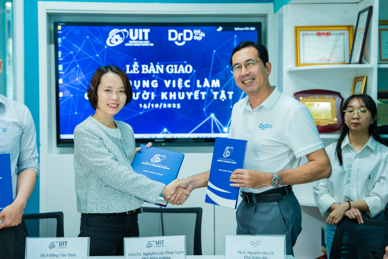Sáng ngày 14/10/2025, Lễ bàn giao Ứng dụng Việc làm cho Người khuyết tật (vieclamnkt.top) hợp tác giữa trường Đại học Công nghệ Thông tin, ĐHQG-HCM (UIT) và Trung tâm Nghiên cứu và Phát triển Năng lực Người khuyết tật (DRD) đã diễn ra trong không khí trang trọng.