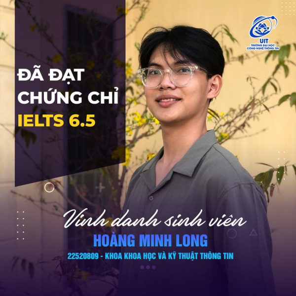 Chúc mừng sinh viên Hoàng Minh Long - 22520809, khoa Khoa học & Kỹ thuật Thông tin đã xuất sắc đạt chứng chỉ IELTSs 6.5