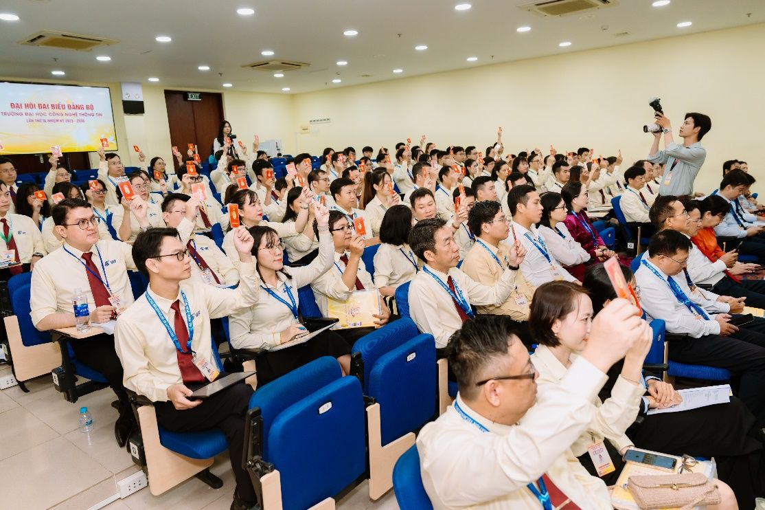 Thông qua các lớp bồi dưỡng lý luận chính trị, các chương trình tập huấn, hội thảo chuyên đề và thực tiễn công tác, đội ngũ cán bộ quản lý, cán bộ Đảng từng bước được chuẩn hóa, nâng cao năng lực lãnh đạo, phong cách làm việc khoa học, dân chủ, trách nhiệm và nêu gương. Đảng ủy Nhà trường đồng thời quan tâm phát hiện, bồi dưỡng cán bộ trẻ có triển vọng, tạo điều kiện để rèn luyện, thử thách qua thực tiễn, qua đó hình thành đội ngũ cán bộ vừa có bản lĩnh chính trị vững vàng, vừa có trình độ chuyên môn sâu, đáp ứng yêu cầu phát triển của một trường đại học định hướng nghiên cứu trong lĩnh vực công nghệ thông tin.