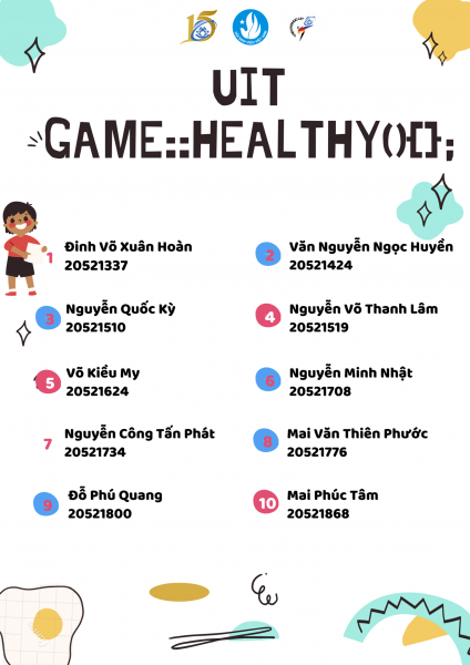 UIT Games::HEALTHY là cuộc thi nhằm khuyến khích sinh viên luyện thể dục thường xuyên để có một sức khỏe tốt chống lại dịch bệnh. Cuộc thi do câu lạc bộ Taekwondo UIT tổ chức. Cuộc thi đã kết thúc một cách tốt đẹp. BTC xin gửi danh sách những bạn đạt tiêu chí "Thể lực tốt".