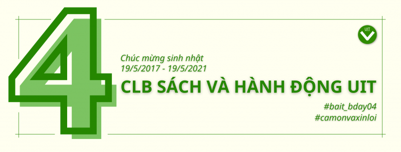 Một lần nữa, chúc mừng sinh nhật lần thứ tư của CLB Sách và Hành động UIT. Mong rằng trong thời gian tới, câu lạc bộ sẽ tiếp tục tạo ra những hoạt động ý nghĩa cho sinh viên UIT.