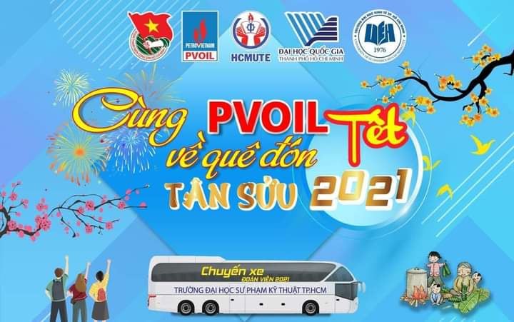 Chương trình Chuyến xe đoàn viên - Cùng Pvoil về quê đón tết Tân Sửu 2021 dành cho các bạn sinh viên của Đại học Quốc gia TP.HCM đã chính thức quay trở lại. Đây là chương trình nhằm giúp các bạn sinh viên có hoàn cảnh khó khăn, gia đình thuộc hộ nghèo, cận nghèo và các sinh viên có hộ khẩu thường trú tại các khu vực chịu thiệt hại nặng bởi các đợt bão lụt từ tháng 9 - 11/2020.