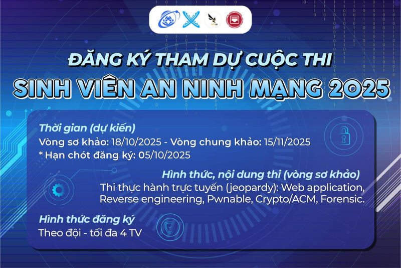 - Vòng Loại: CTF Trực Tuyến (Jeopardy) ngày 18/10/2025.