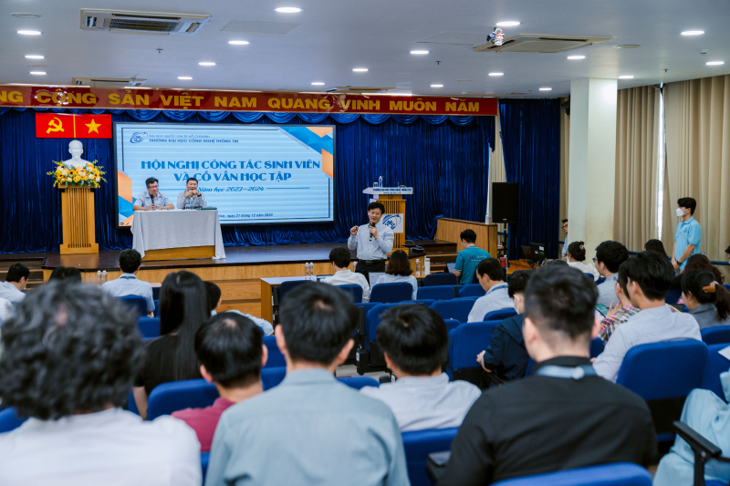 Chiều ngày 21/12/2023, Trường Đại học Công nghệ Thông tin, ĐHQG-HCM tổ chức Hội nghị Công tác sinh viên và Cố vấn học tập 2023 - 2024 tại Hội trường E.