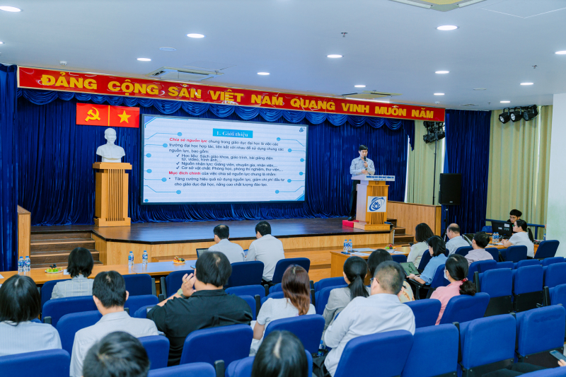 Bên cạnh đó, Đề án cũng trình bày các đề xuất liên quan đến cơ sở pháp lý và các điều kiện đảm bảo triển khai mô hình Đại học chia sẻ, đặc biệt chú trọng xây dựng nền tảng, hạ tầng Công nghệ Thông tin bao gồm các phần cứng, mạng và phần mềm. Sau khi lắng nghe các kết quả nghiên cứu của Đề án, các đại biểu đã tiến hành thảo luận, chia sẻ ý kiến. Các đại biểu đánh giá cao mục tiêu, ý tưởng và các nội dung của Đề án và mong muốn tham gia vào hệ sinh thái chia sẻ cũng như được thụ hưởng các lợi ích của Mô hình này.