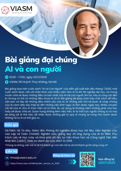 Bài giảng đại chúng "AI và Con Người" – do chính tác giả của cuốn sách cùng tên (phát hành tháng 7/2025) trực tiếp chia sẻ – là cơ hội để: