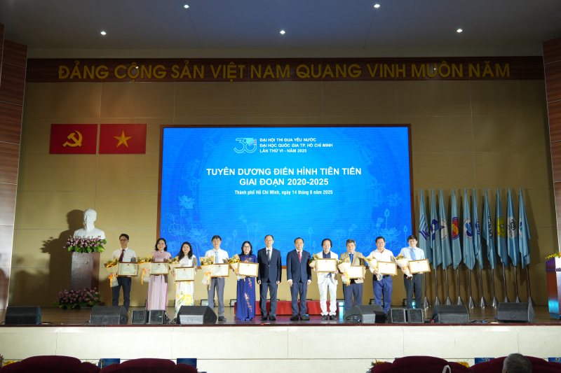 Đại hội đã tuyên dương và chúc mừng 22 tập thể và 18 cá nhân điển hình tiên tiến trong phong trào thi đua yêu nước ĐHQG-HCM giai đoạn 2020 - 2025. Đây là sự ghi nhận cho những đóng góp bền bỉ, sáng tạo và cống hiến của các tập thể, cá nhân trong toàn hệ thống.