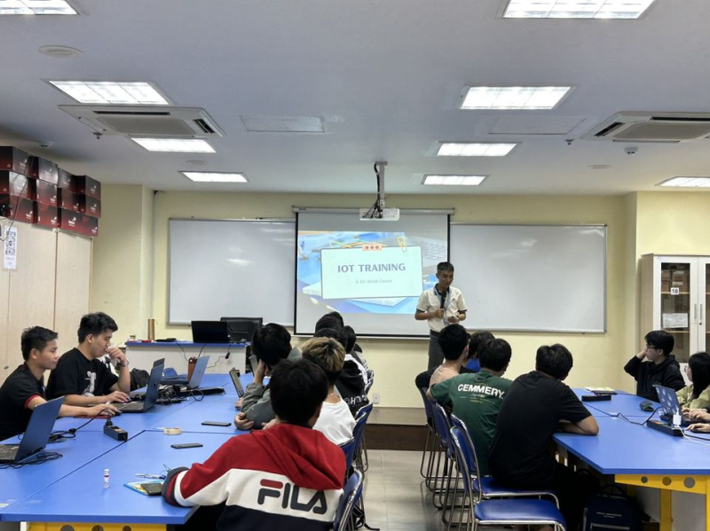 Chiều nay tại phòng thực hành E3.1, Khóa học IoT Training Class đã chính thức khởi động cùng với sự hào hứng của các bạn sinh viên. Ở buổi học đầu tiên, các bạn đã có cơ hội làm quen với giảng viên, các mô hình ứng dụng IoT, đồng thời bước đầu tiếp cận các thiết bị nhúng.