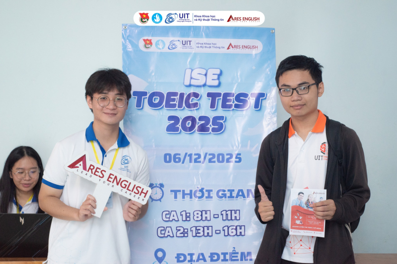 Vào ngày 06/12/2025 vừa qua, chương trình ISE TOEIC TEST 2025 do Khoa Khoa học và Kỹ thuật Thông tin phối hợp cùng Trung tâm Anh ngữ ARES English tổ chức đã diễn ra thành công tốt đẹp, thu hút sự quan tâm và tham gia đông đảo của các bạn sinh viên UIT.
