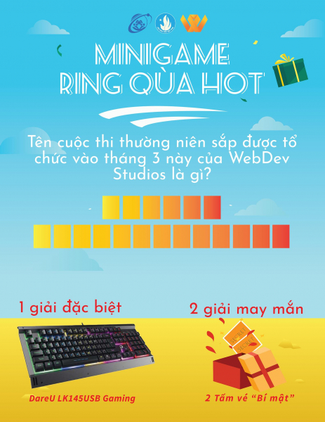 Sau thời gian nghỉ tết, cuối cùng câu lạc bộ WebDev studios cũng quay trở lại với những hoạt động mới. Và để mở đầu cho một năm hoạt động ý nghĩa câu lạc bộ đã tổ chức minigame "Ô chữ bí mật".