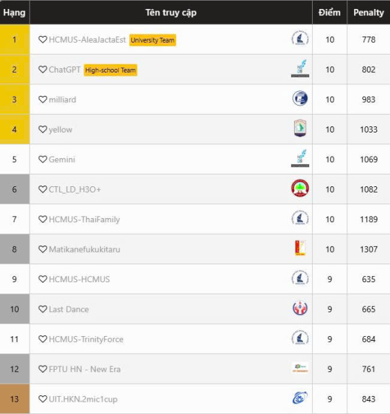 Trải qua 5 giờ thi đấu, các thành viên UIT.HKN.2mic1cup đã giải được 9/10 bài với 843 điểm phạt. Toàn đội đã cùng nhau thể hiện tư duy logic sắc bén, khả năng phối hợp nhịp nhàng và bản lĩnh vững vàng, vượt qua hàng trăm đội tuyển để mang về huy chương Bạc cho UIT.