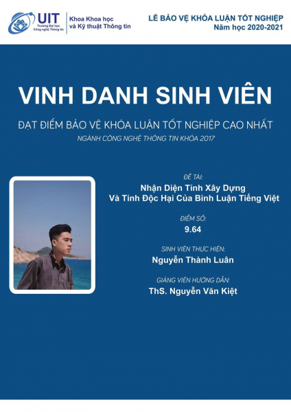 Một lần nữa, xin chúc mừng sinh viên Nguyễn Thành Luân cũng như là các bạn sinh viên ngành Công nghệ Thông tin, Khóa 2017, Khoa Khoa học và Kỹ thuật Thông tin đã hoàn thành xuất sắc khóa luận tốt nghiệp của mình